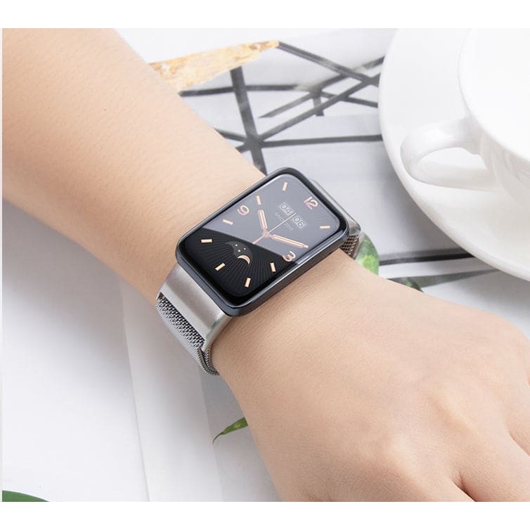 The smooth stainless steel mesh Xiaomi Band 7 Pro Strap wraps fluidly around your wrist